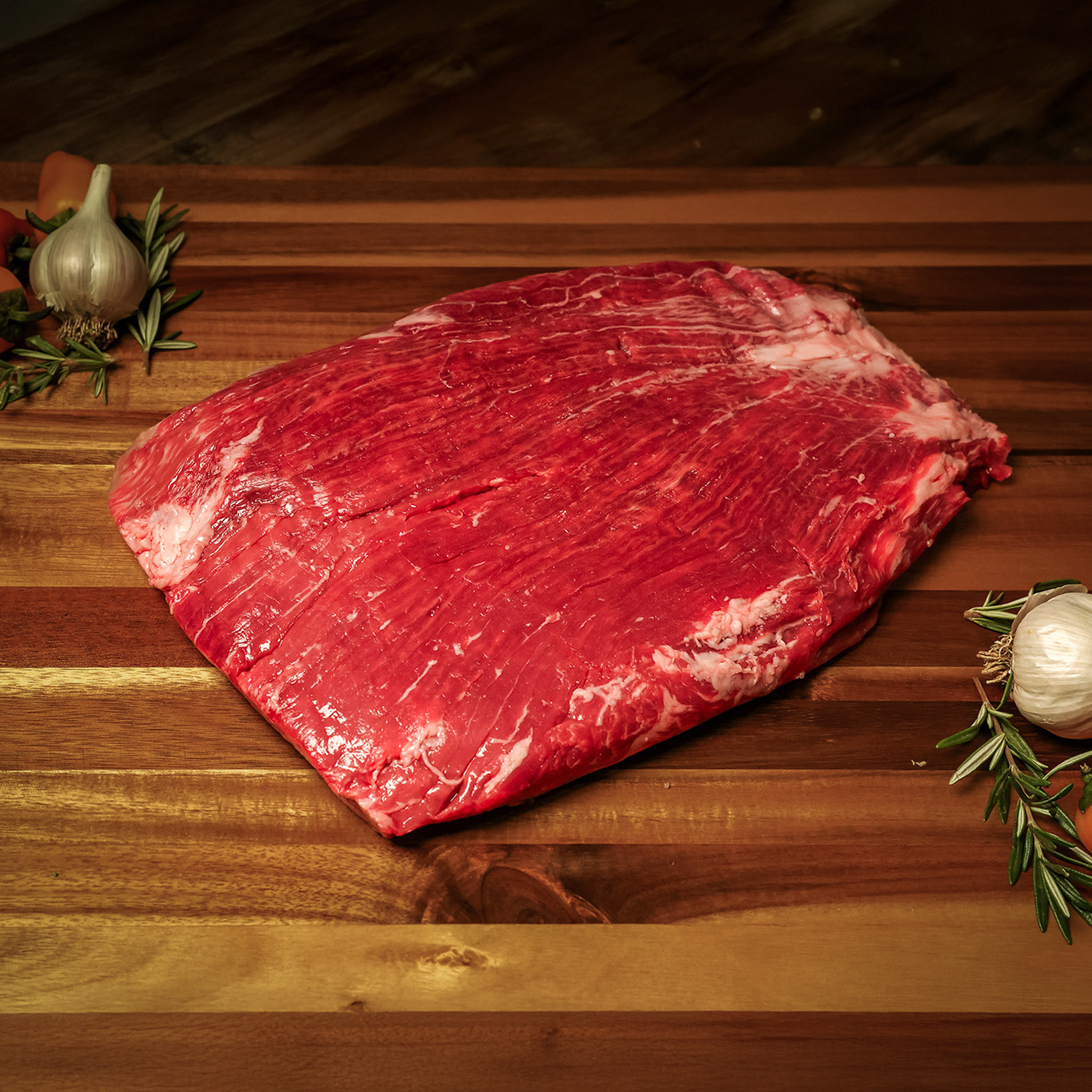 Experience the rich, buttery flavor of American Akaushi Wagyu Flank Steak, a premium cut valued for its natural tenderness, refined marbling, and clean, satisfying taste. Sourced from the abdominal muscles of the cow, this traditionally lean cut is elevated by Akaushi Wagyu genetics, which enhance juiciness and texture without overpowering the steak’s natural character. The fine marbling in American Akaushi Wagyu flank steak helps deliver a tender, flavorful bite that rivals more indulgent premium cuts.